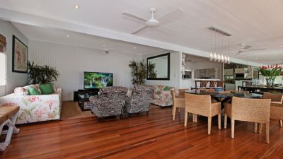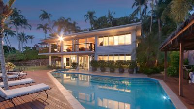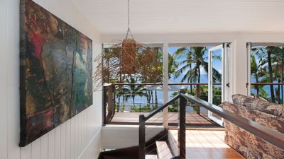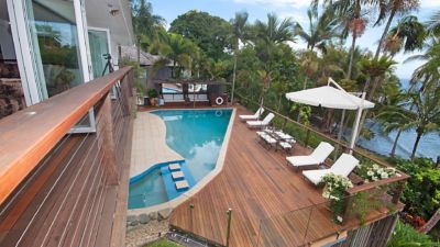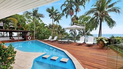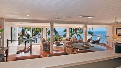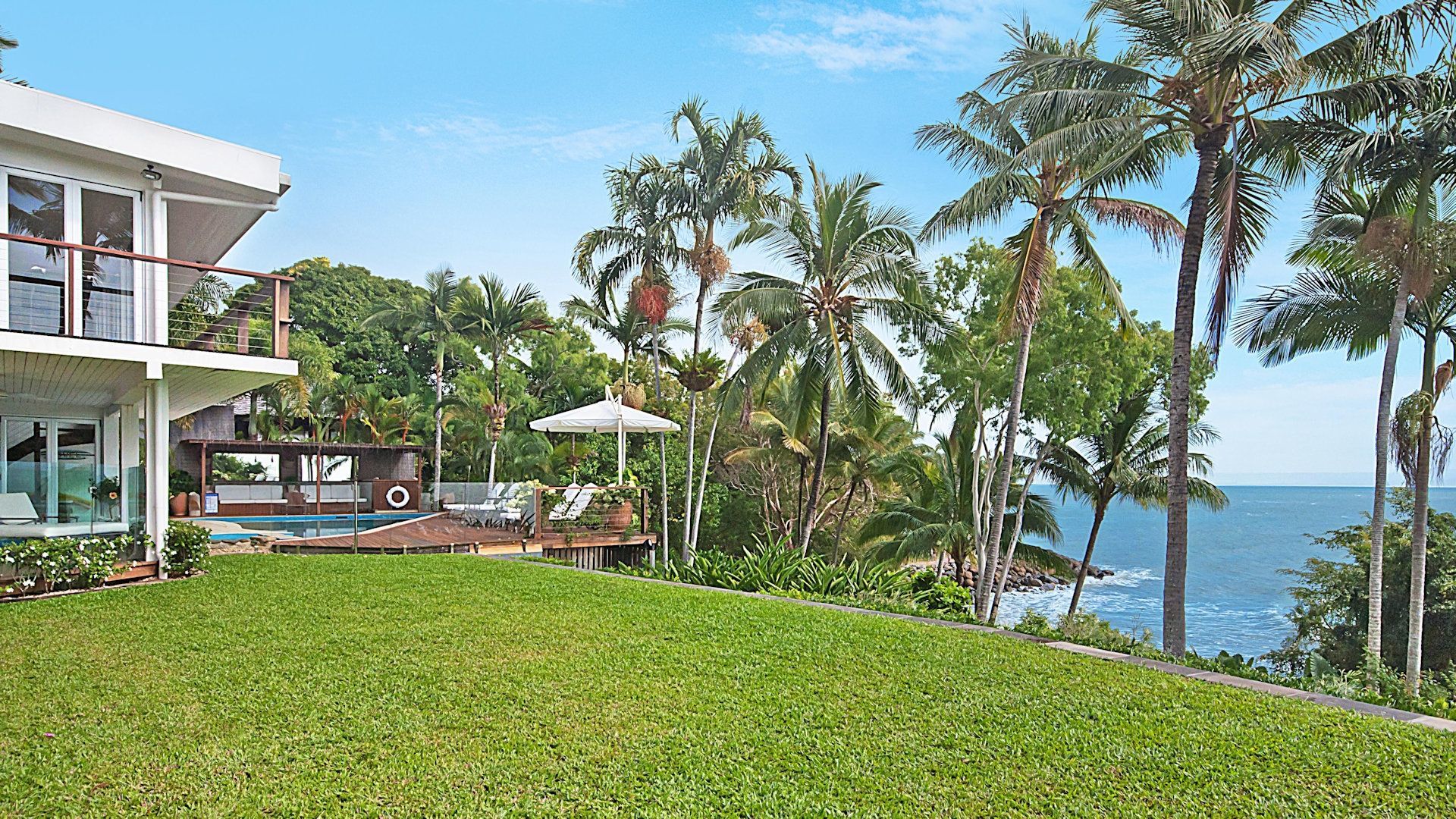 This ocean front home sits gently into the hillside and is surrounded by a landscape of established tropical plants. Spacious verandahs and a huge pool and entertaining area lead to a large manicured lawn which all combines to celebrate the sensuality of tropical living.