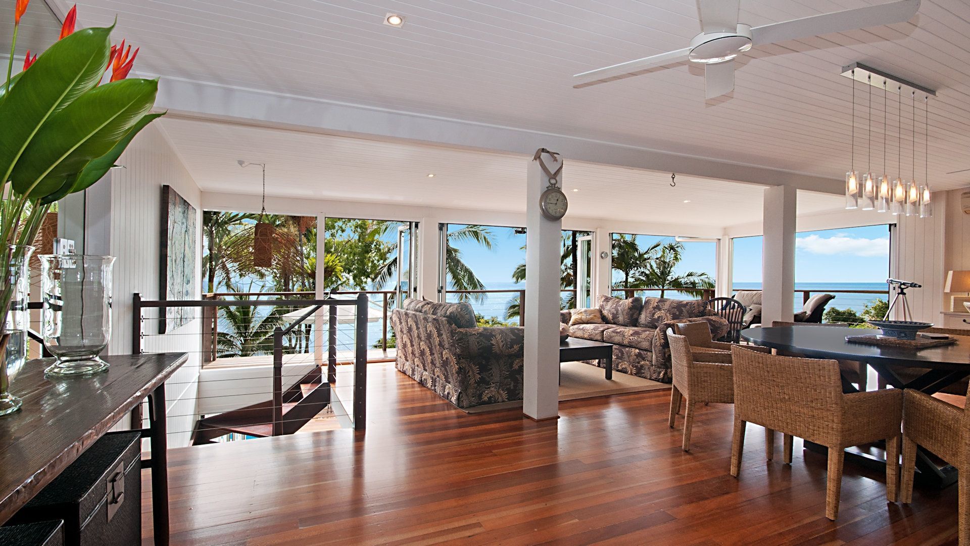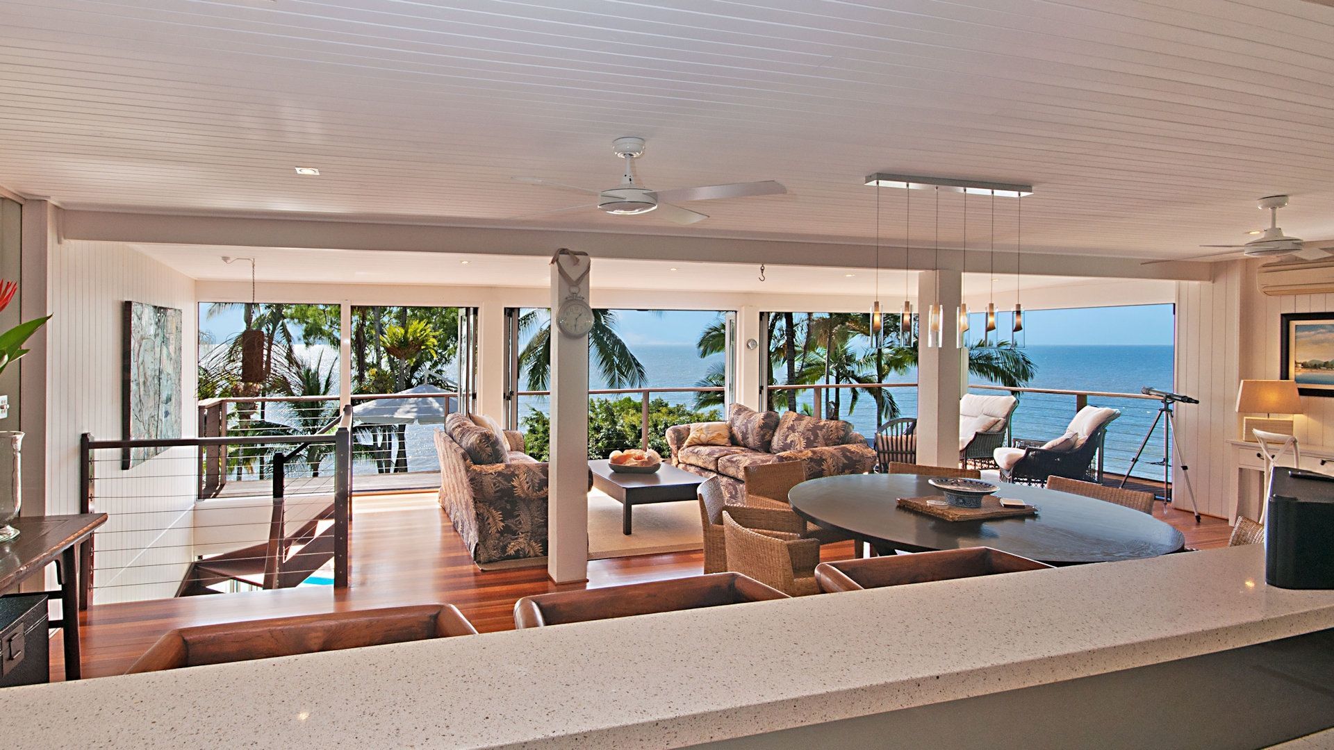 The home consists of 4 bedrooms, 3 with ensuites. Each room is open to the ocean breeze with its elevated position and northerly aspect providing a clear 180 degree view across the coral sea stretching to the world heritage listed Daintree rainforest.