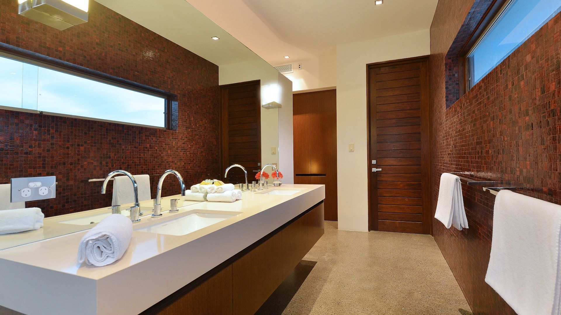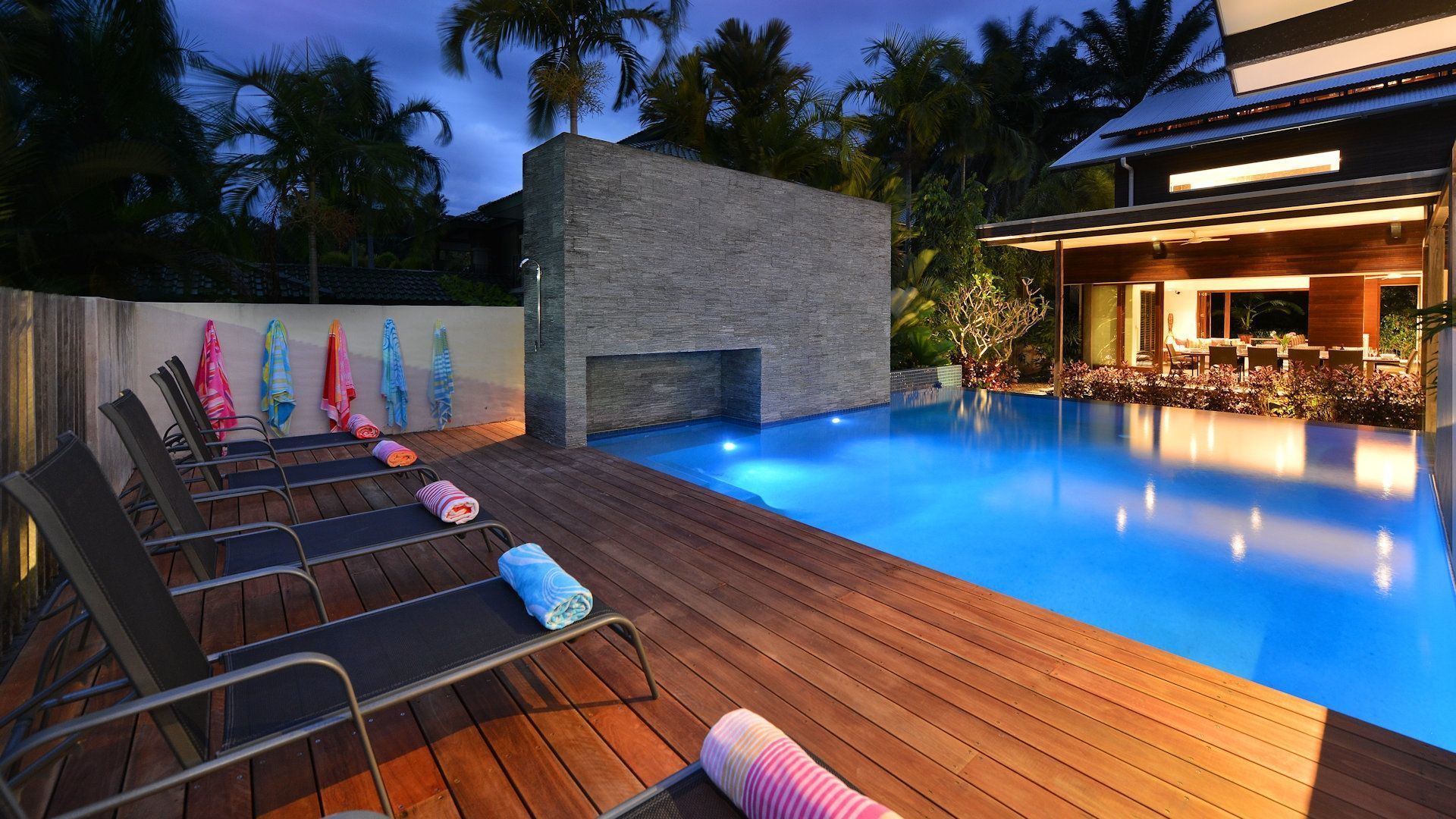 This luxurious four-bedroom home designed by Wolveridge Architects sits adjacent to the beachfront at the Mirage Estate. Designed over two sleek and sophisticated levels, up to 8 guests can be comfortably accommodated in four spacious bedrooms. The sparkling blue swimming pool leads you along the timber deck, past the rumpus room and outdoor dining area to the luxurious lounge and kitchen where views of the Sheraton Mirage Golf Course can be enjoyed. Two bedrooms are located downstairs and the two spacious master bedrooms and ensuites are located upstairs with a large verandah overlooking the backyard and the golf course. This luxe home is truly indulgent…