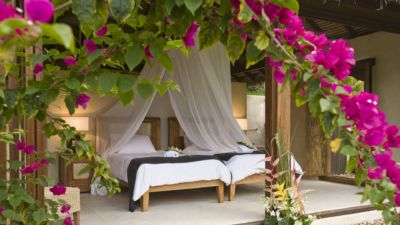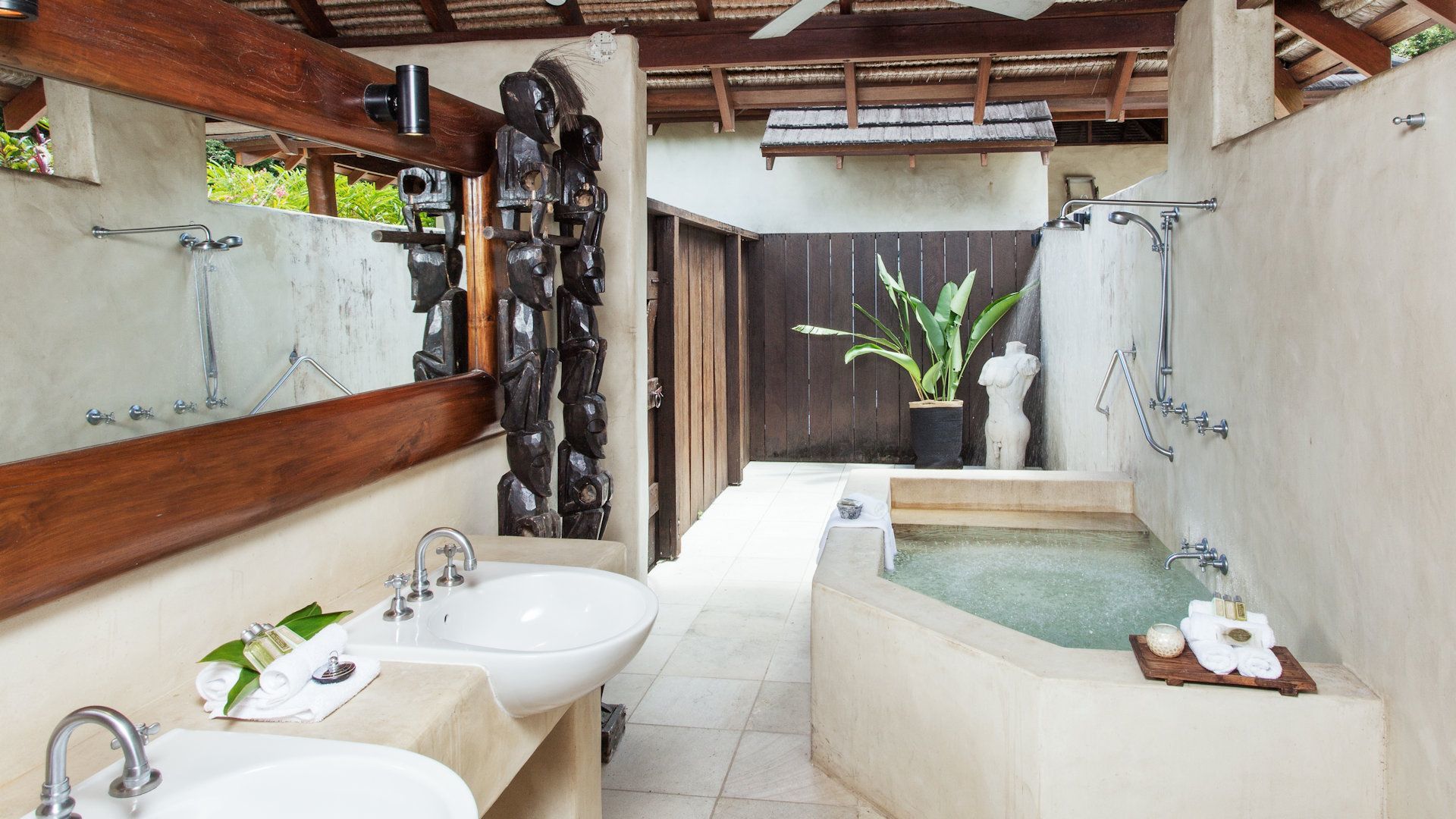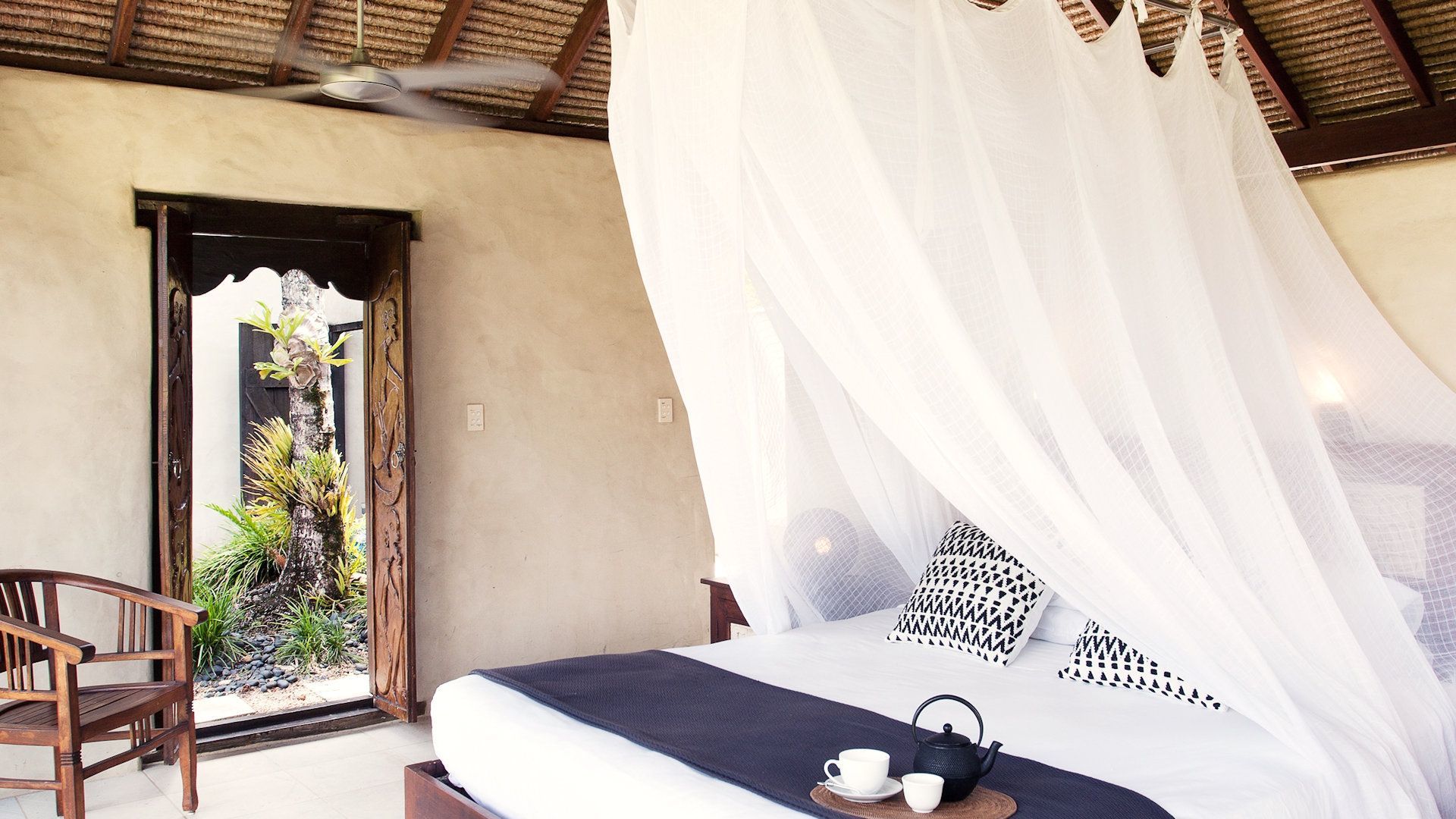 Whether you choose to holiday with friends, honeymoon or have a family getaway, the separate thatched bures accommodate up to 8 guests in three spacious bedrooms. Bali Hai offers all the mod cons essential for a tropical holiday in paradise. From the stunning wet edge pool and sunken baths to the swimming holes and rapids in the pristine river, water is a key element in the beautiful landscape of this property. The river and natural springs flow through the property to calm the soul. Wander through the manicured gardens and marvel at the exotic fruit in the orchard. Here, your senses are stimulated, luxury surrounds you and time stands still. Change your latitude and experience Bali Hai.