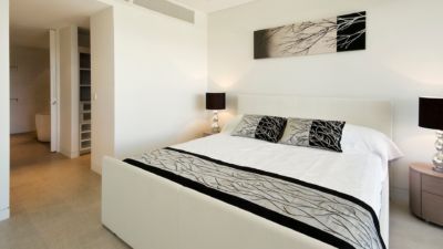 While the bedrooms beckon relaxation in their restorative design and the main is a masterpiece complete with its walk-through dressing room and spacious bathroom with spa, the kitchen and living areas have been created to be the centre of enjoyment. Thoughtfully laid out, the kitchen comprises luxury Miele kitchen appliances with everything and more provided for elegant entertaining to ensure guests will want for nothing during their time at Coconut Grove.