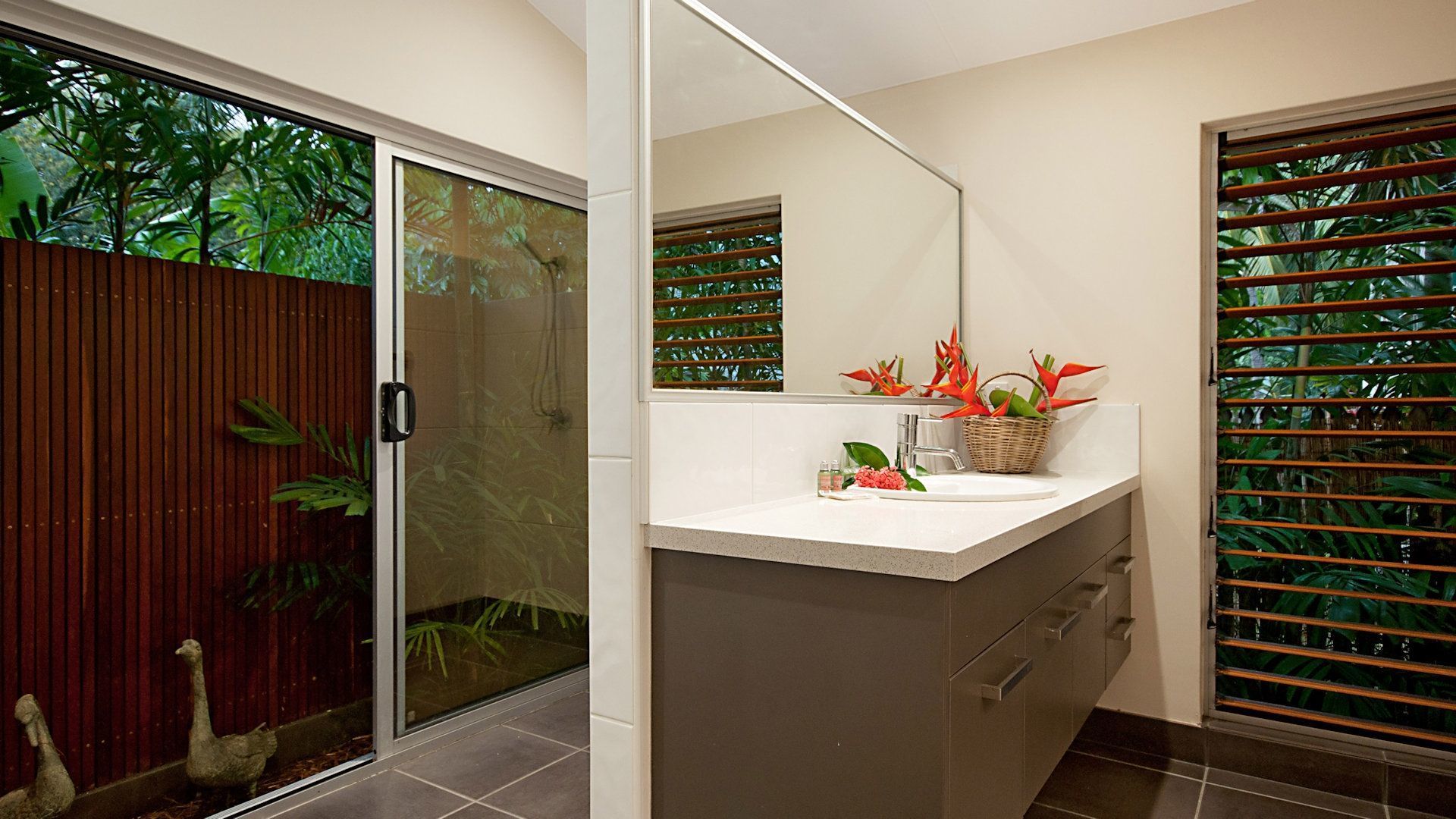 - Two bathrooms, plus additional toilet and outdoor hot and cold shower