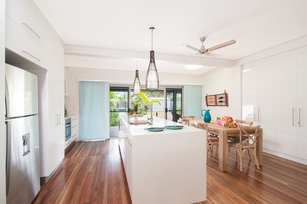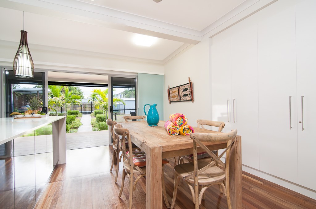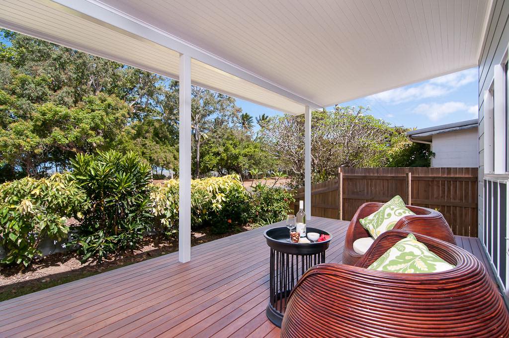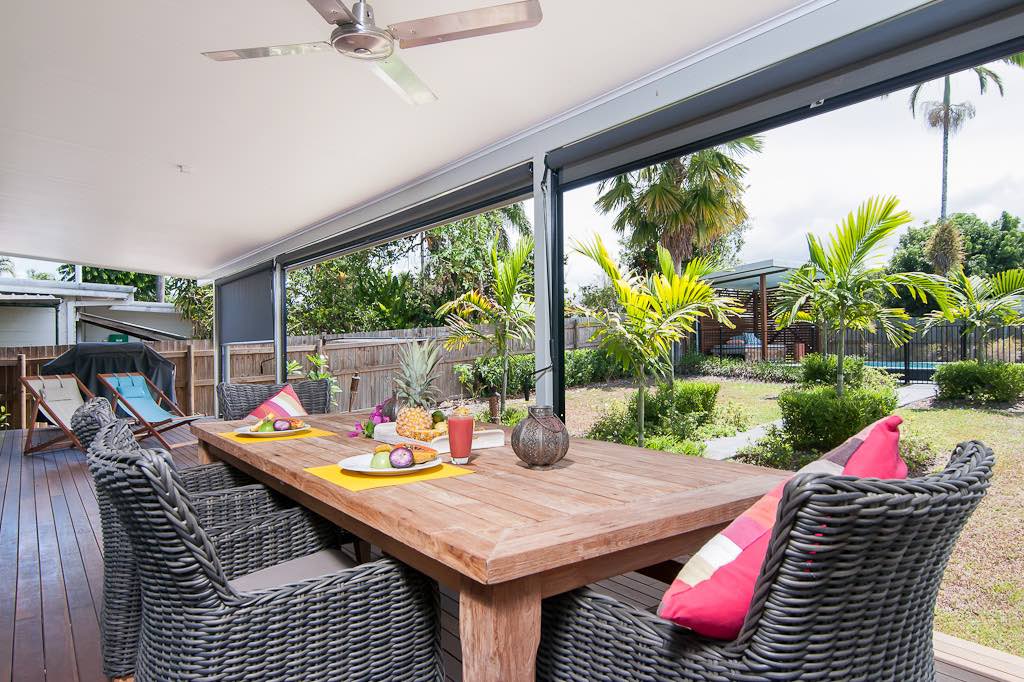 Jalun Bayun, the Sea House, in the local aboriginal dialect,Yalangi, is the name of this newly refurbished seaside property. This immaculately presented house is situated across the road from beautiful Newell Beach, Tropical North Queensland, Australia. A short drive from Port Douglas.Another family Port Douglas holiday house. With three adequate bedrooms, sleeping six, this house creates the perfect base for a tropical beach holiday like no other. The house has polished floor boards throughout and each of the 3 bedrooms have ceiling fans, air conditioners and inbuilt wardrobes. The kitchen has all the latest modern appliances that one would need, including a coffee machine, dishwasher and microwave. Guests find this charming home well equipped. The large outdoor deck is ideal for BBQs and entertaining and the open plan living area gives you views across the Coral Sea over to Port Douglas and beyond. Beautifully furnished and decorated with artwork by local artists, this is the ultimate home away from home while you take in all that Far North Queensland has to offer, including the Daintree National Rainforest, the Great Barrier Reef, and nearby towns of Mossman and Port Douglas featuring local markets, cafés, restaurants, boutiques and more. If going out isn’t on your agenda for the day, this property is footsteps to the warm sands of Newell Beach and the beautiful poolside cabana is the perfect place to relax and pass the day away.A very affordable option close to all amenities to rest and enjoy a quiet time.Vacation in a calm environment just 25 Minutes to Port Douglas and one hour north to Cairns