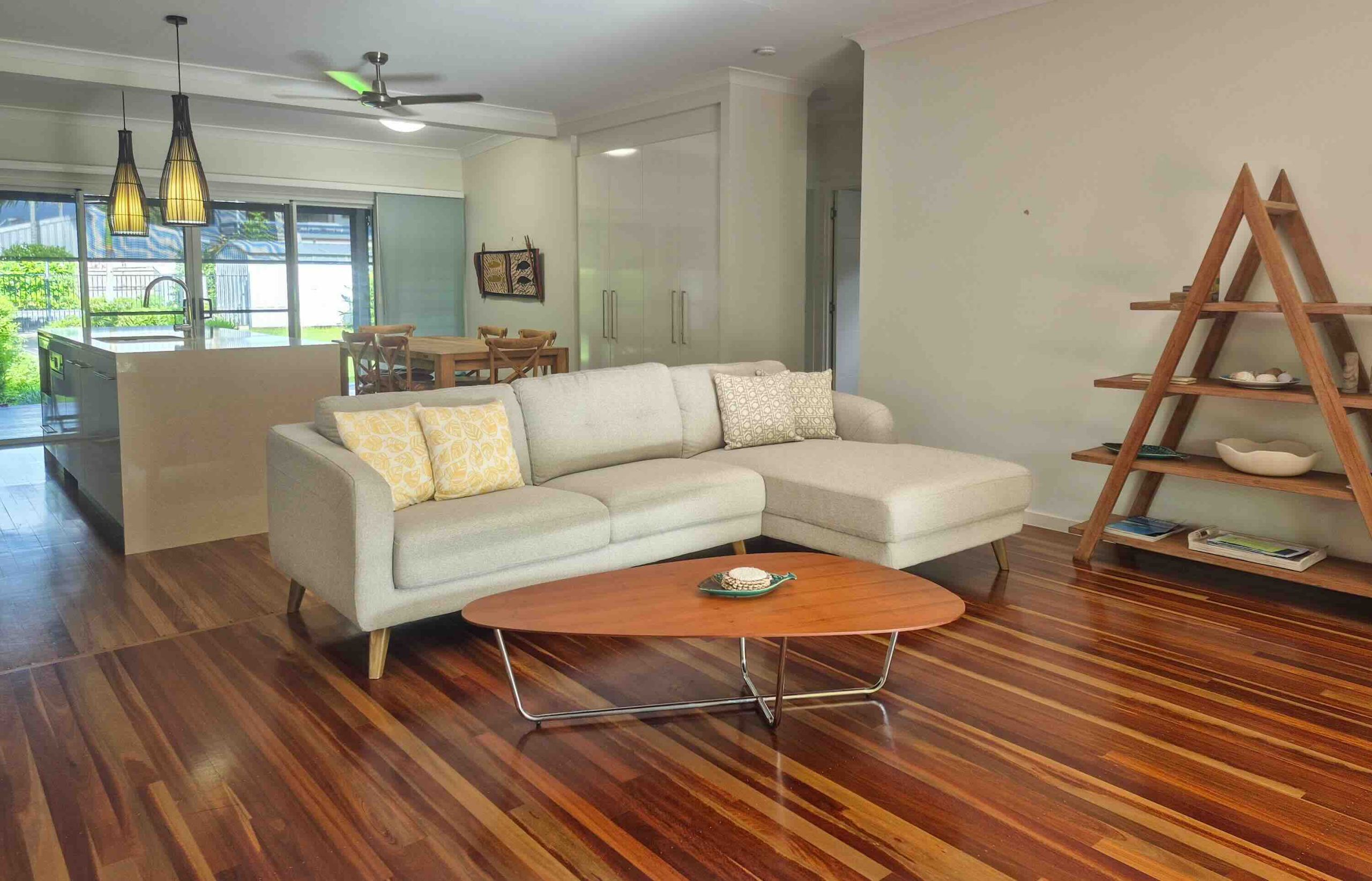 - Open-plan living with polished timber floorboards throughout