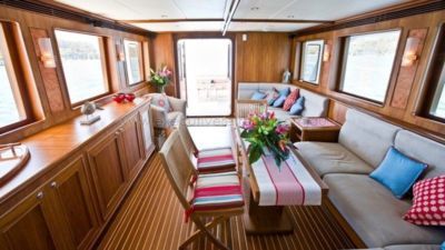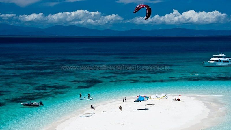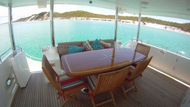 Before you immerse yourself in the wonders of the Great Barrier Reef and the many activities it offers, you can get comfortable on board the yacht. The interior is fitted with beautiful timbers and splashes of colour, creating a unique style of class and comfort. She can comfortably sleep up to 7 guests in three state rooms, each with ensuites: master suite (2 guests), VIP suite (2 guests) and guest room (3 guests). The yacht is ideally set up for three couples or six singles or a combination of both. Each state room and lounge has Flat screen LCD televisions with satellite TV and DVD players. On board is the latest communications systems, including of course the internet, which can be accessed by the guests over most of the Great Barrier Reef. All cabins have individually controlled air conditioning and the boat has three spacious living areas spread over no less than three decks. The outdoor dining and wet bar area allows the guests to fully unwind after a big day of fishing, snorkelling, diving or even windsurfing, whilst anchored behind one of the numerous outer reefs.