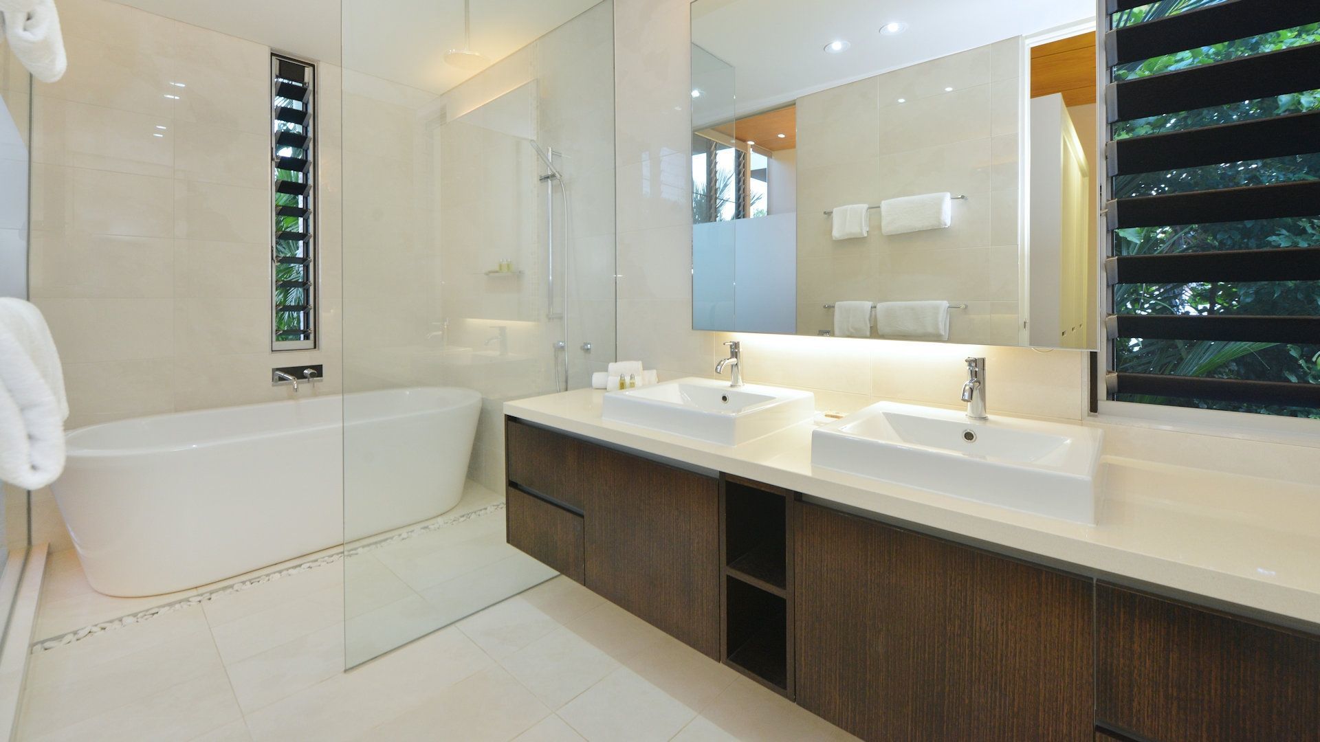 Award winning and with all the mod cons, Oswego is a luxe, relaxing sanctuary hidden in Port Douglas. Featuring the very best in fixtures and fittings, this retreat is an entertainers paradise. Enter down the garden path and over the fish pond bridge into a spacious entertaining level, complete with gourmet kitchen and a classic butler’s pantry, dining room, lounge and outdoor areas by the pool. The upper level features a home office and three of the four bedrooms, each with their own ensuite and one with a large two person bath tub.