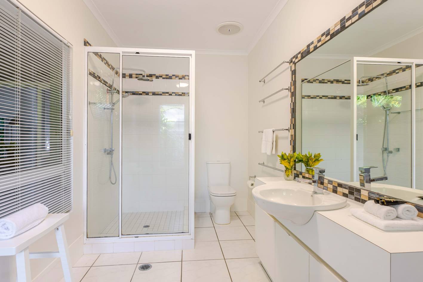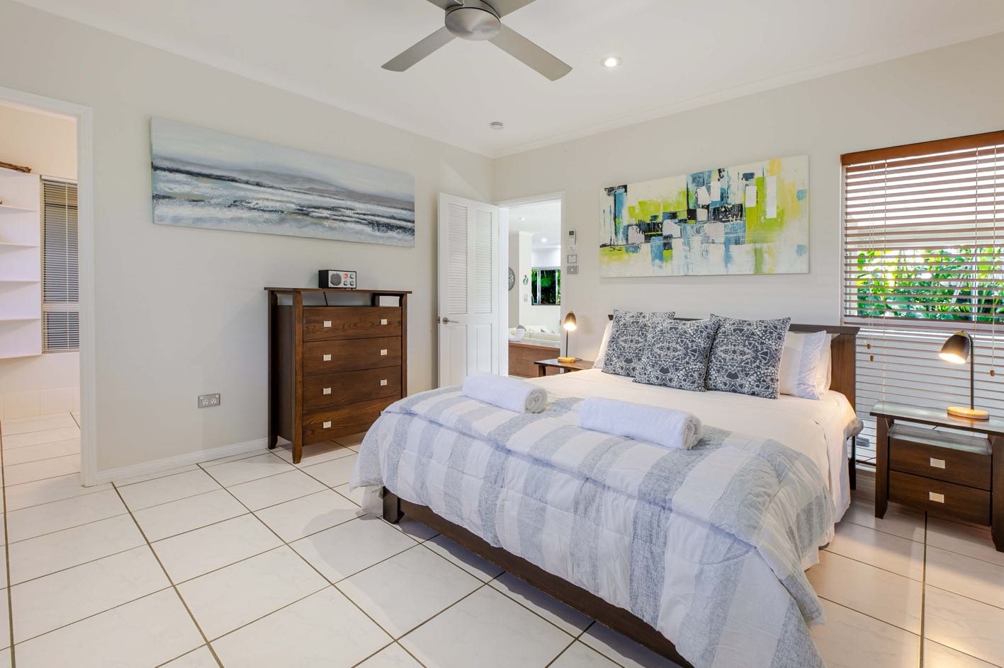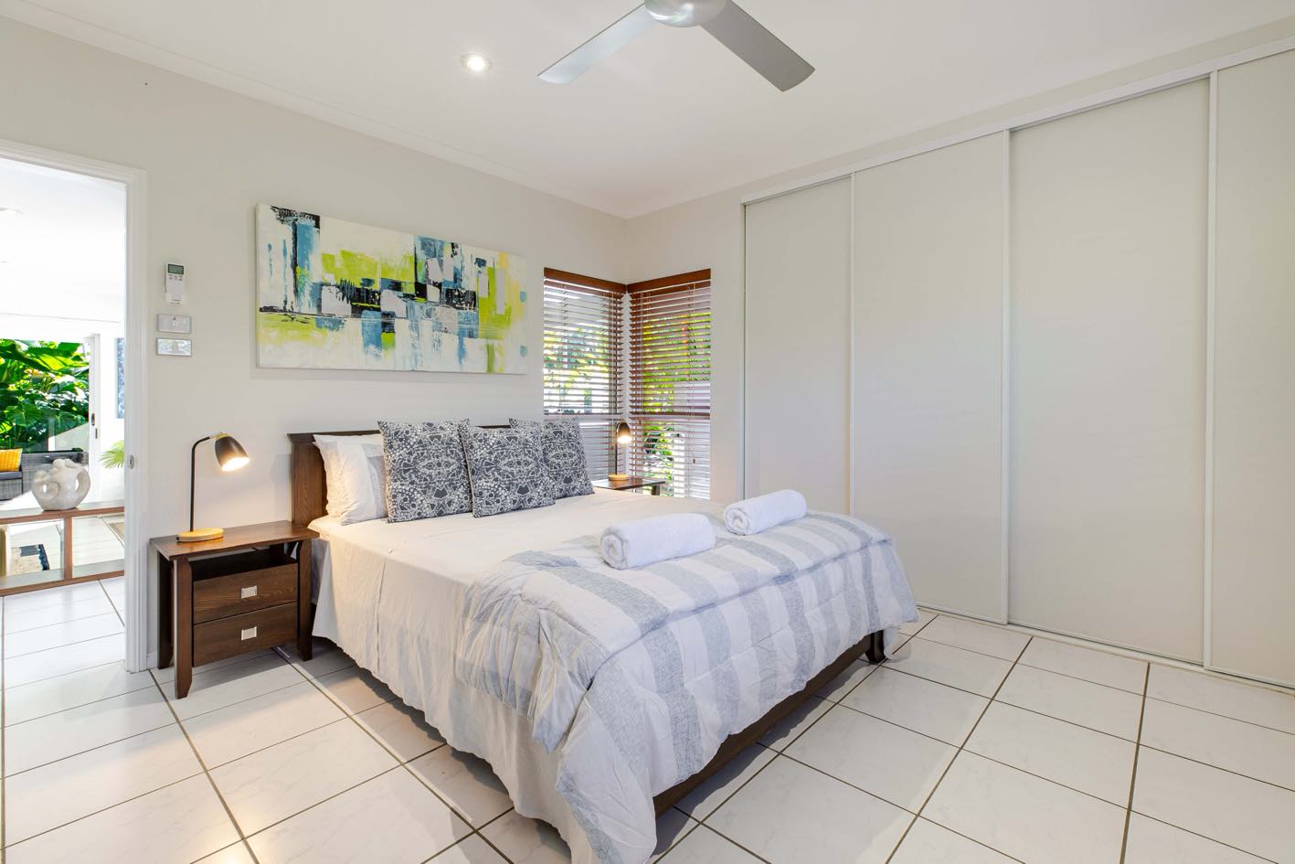- Three spacious bedrooms (Two with Queen beds & one with two King Single beds)