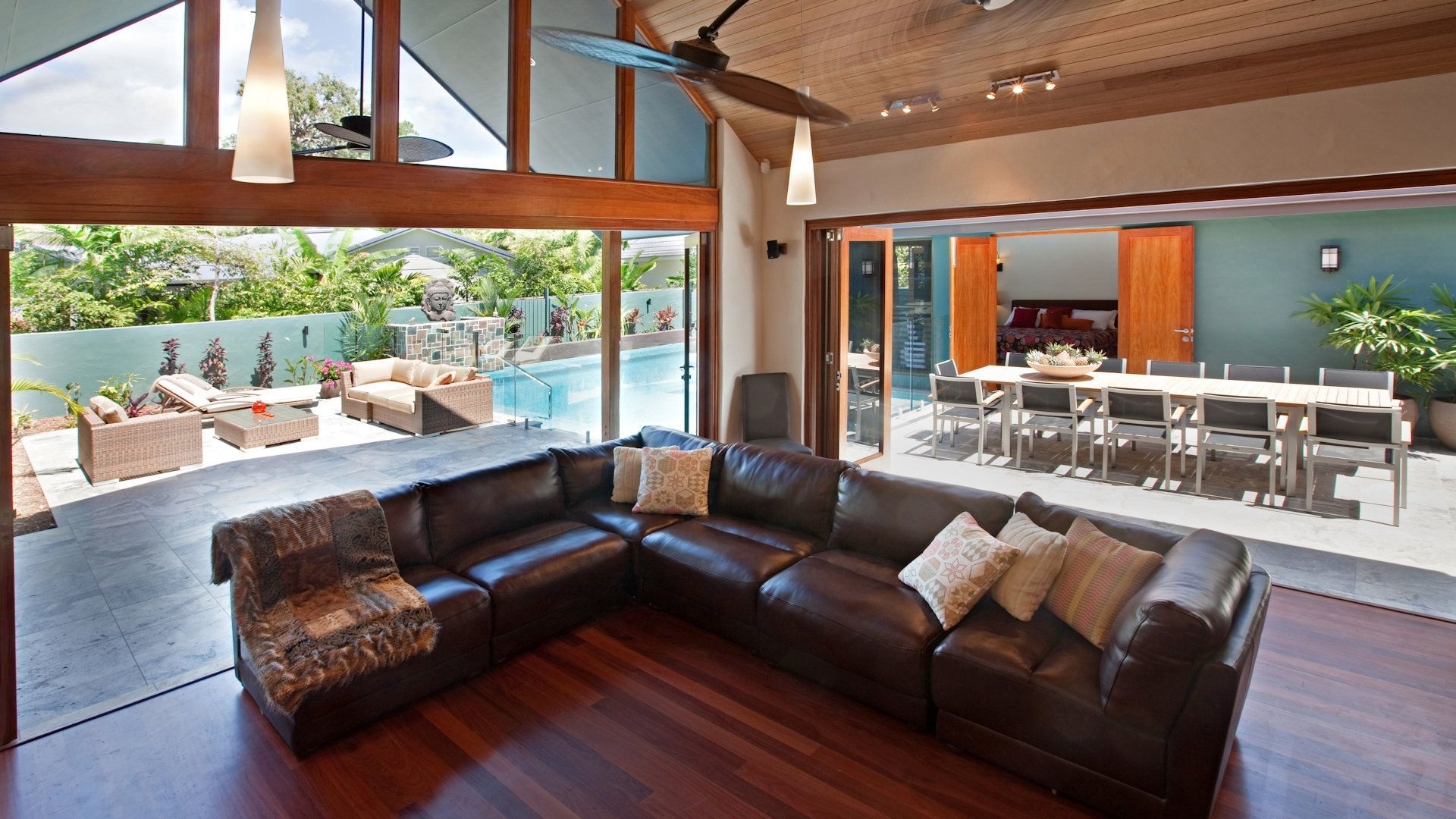 Sea Pavilion is a palatial two storey, six bedroom home just a short stroll from popular Four Mile Beach, Port Douglas. The open plan lounge and entertaining area opens up on to the pool area with plenty of space for all. The kitchen is a gourmet’s delight and features all the mod cons. The sixth bedroom is shared with the private gym. This retreat epitomises the ‘Art of Tropical Living’.
