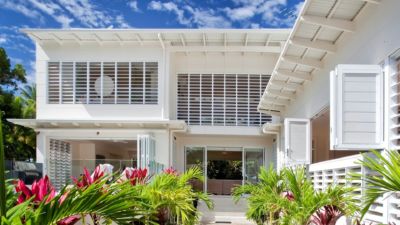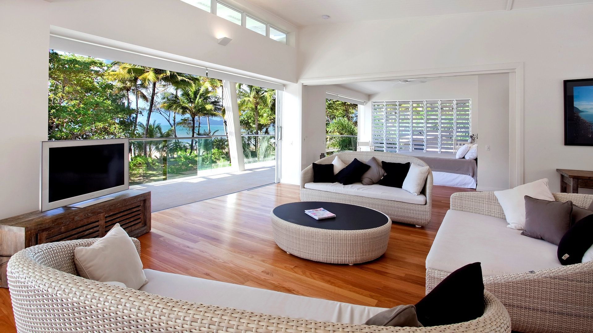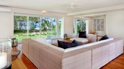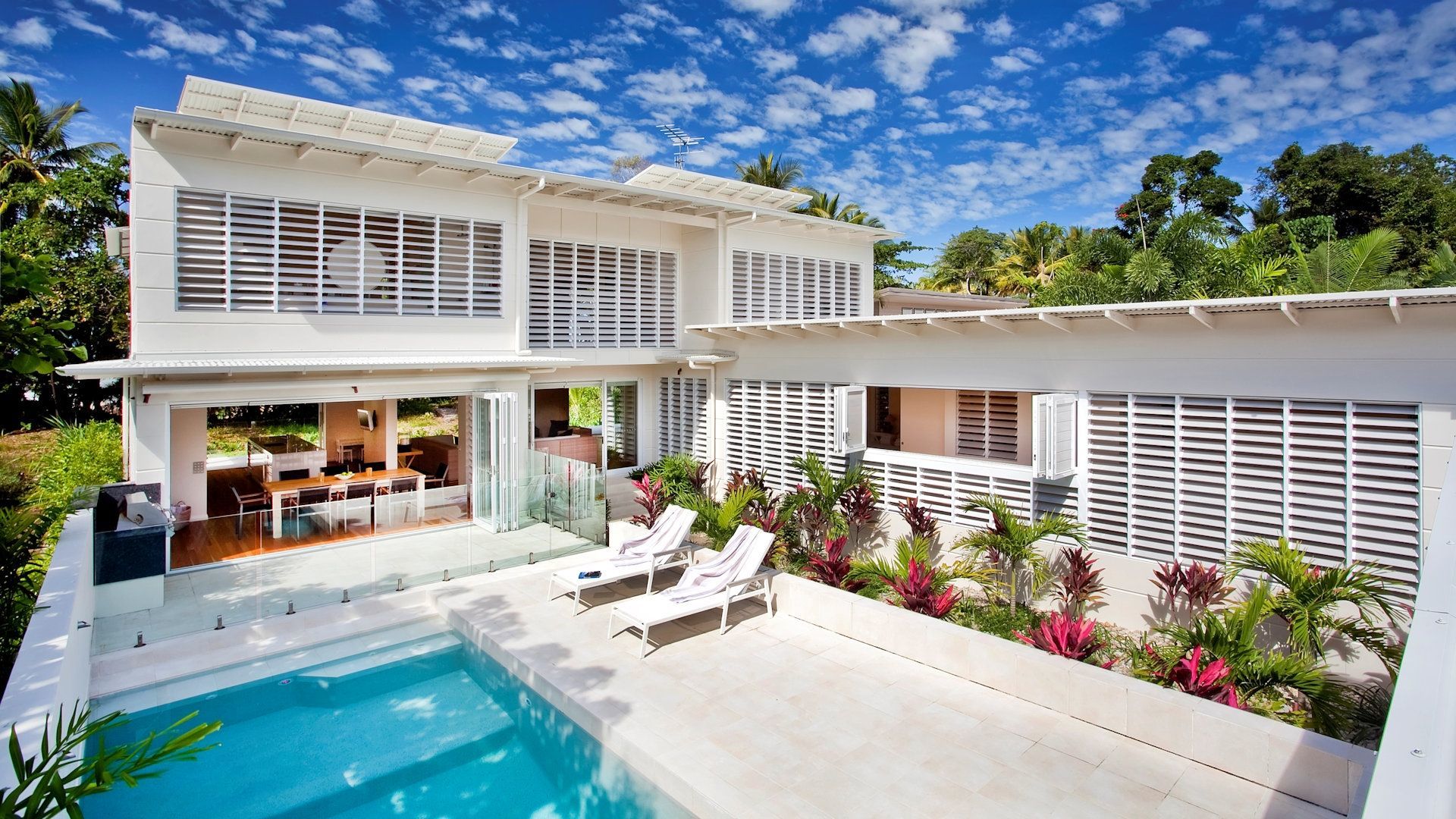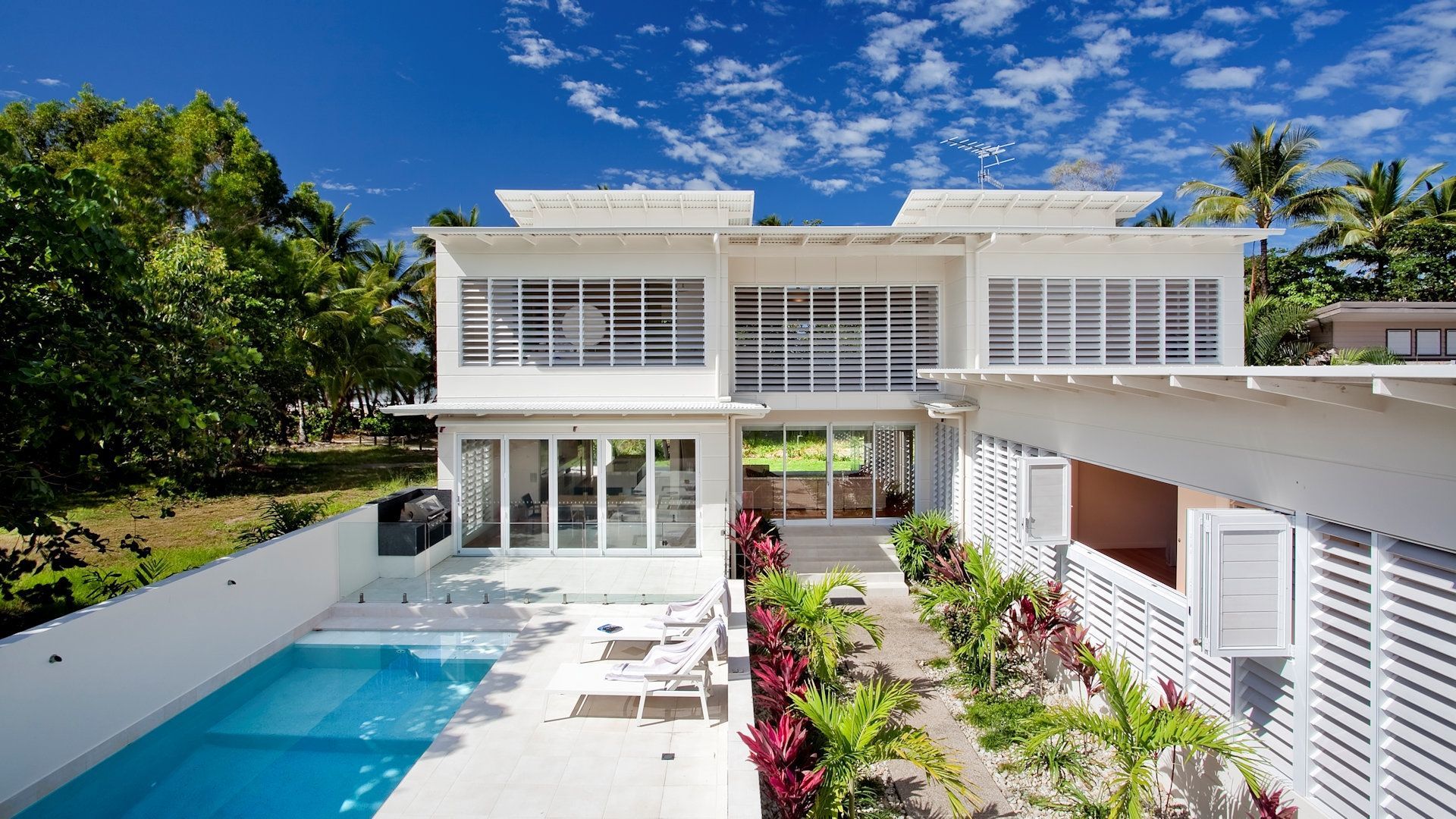 The White House is a large, two storey palatial home located on absolute beachfront at Mission Beach, QLD. Featuring views to the Coral Sea and across to Dunk and Bedarra Islands, The White House showcases these gems of the tropical north from the comfort of a luxury holiday home. With four spacious bedrooms and four bathrooms, The White House easily accommodates up to eight guests (10 max). Designed over two levels, the sea breezes will find you whether you are relaxing upstairs with a book on the lounge or downstairs poolside with a cocktail.
