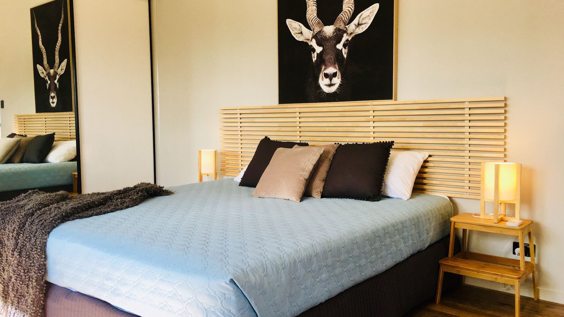 bedroom 1: king bed or 2 king singles