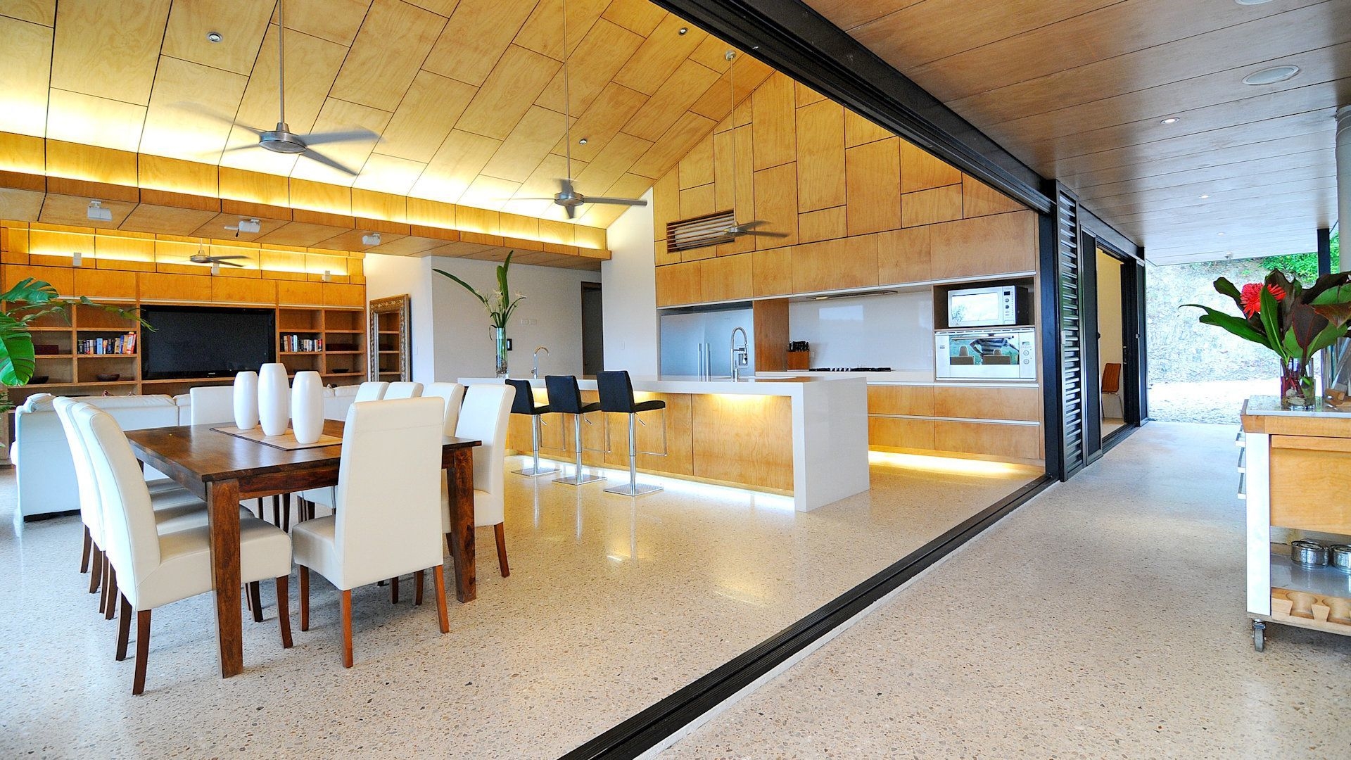 - Open walls, glass stacking doors, open indoor/outdoor living